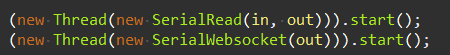 SerialWebsocket 클래스는 Serial.java에서 다음과 같이 호출되는 클래스이다.