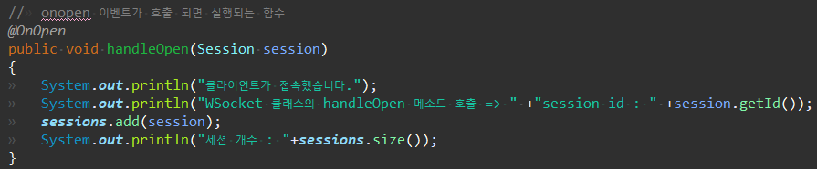 그리고, websocket 패키지의 WSocket.java로 이동하자.