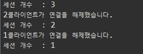 아래는 디버깅용으로 세션의 수를 출력한다.