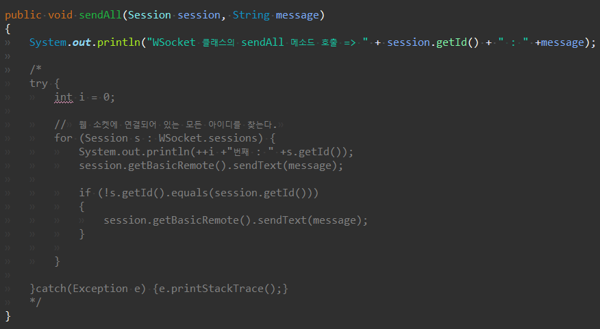 그리고 기존의 sendAll 메소드는 비어있는 상태로 둔다.