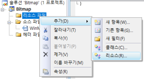 추가적으로, 아래의 솔루션 탐색기에서 Bitmap.rc를 더블 클릭해보자.